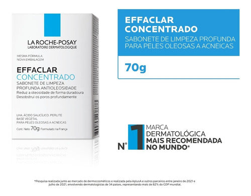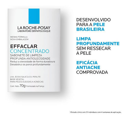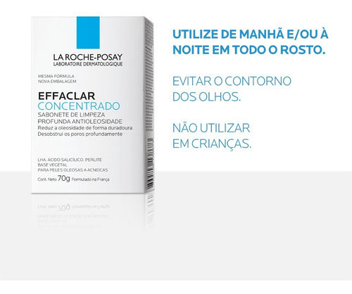 Sabonete em barra facial para peles oleosas e acneicas. La Roche-Posay Effaclar Concentrado controla da oleosidade e ajuda no cuidado antiacne.