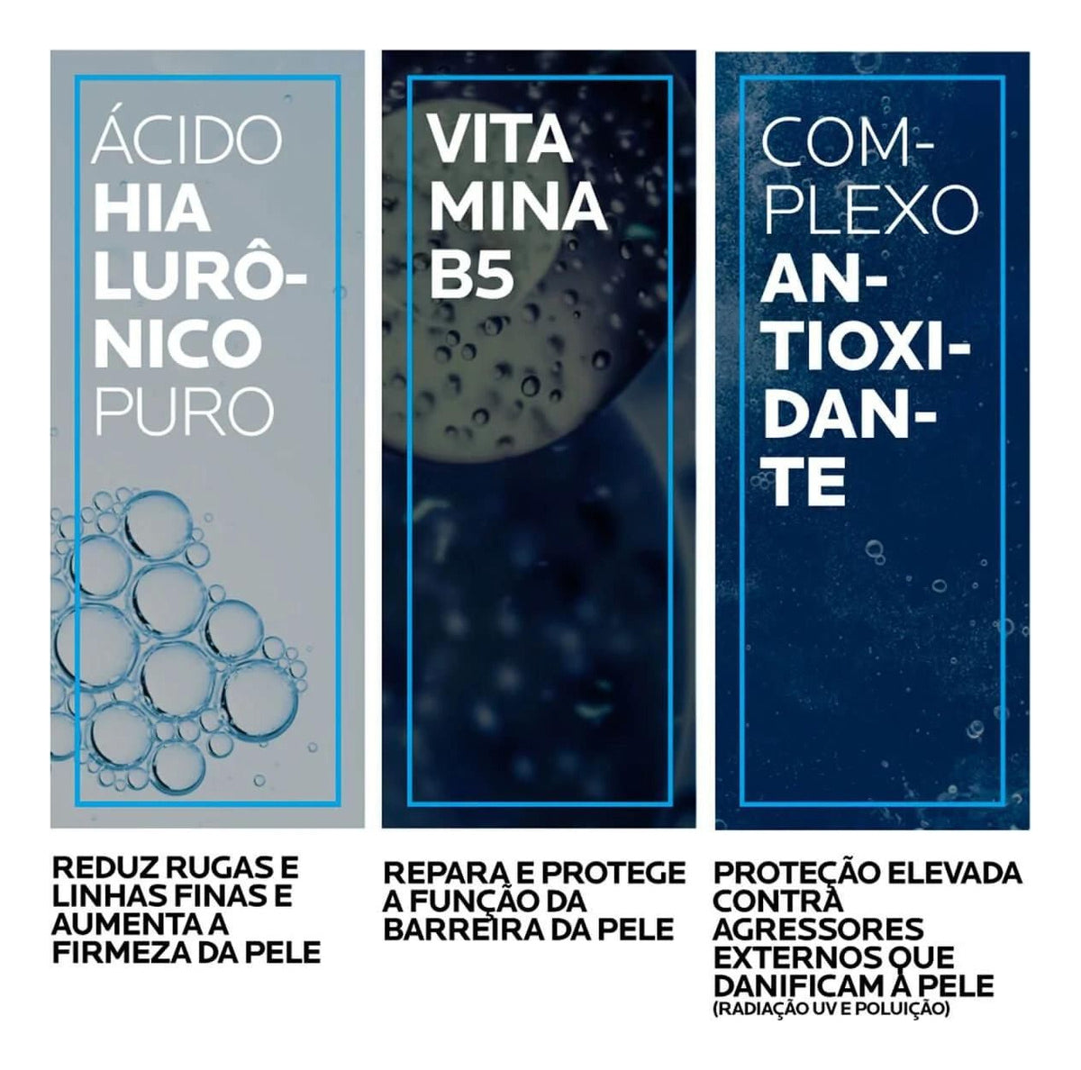 Rico em Ácido Hialurónico Puro, Vitamina B5, Vitamina E e Água Termal de La Roche-Posay, ele também age como um produto antipoluição, antioxidante, hidratante e calmante.